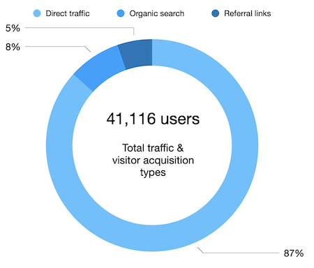 • Direct traffic: 35,657 users typed the website address into the URI bar or clicked on a link to the Knowledge Base.