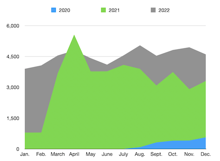2022 was a second straight year of significant growth. Compared to 2021, we saw nearly a 40% rise in users! Starting in February 2022, we had 4,000+ users visit the Knowledge Base each month—January 2022 was close with 3,896 users. We attribute this growth not only to the increasing number of customers, but the Knowledge Base’s expanded visibility with customers.