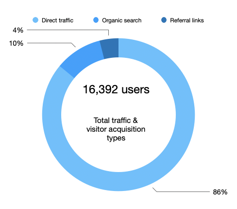 - Direct traffic: 14,035 users typed the website address into the URI bar or clicked on a link to the Knowledge Base.