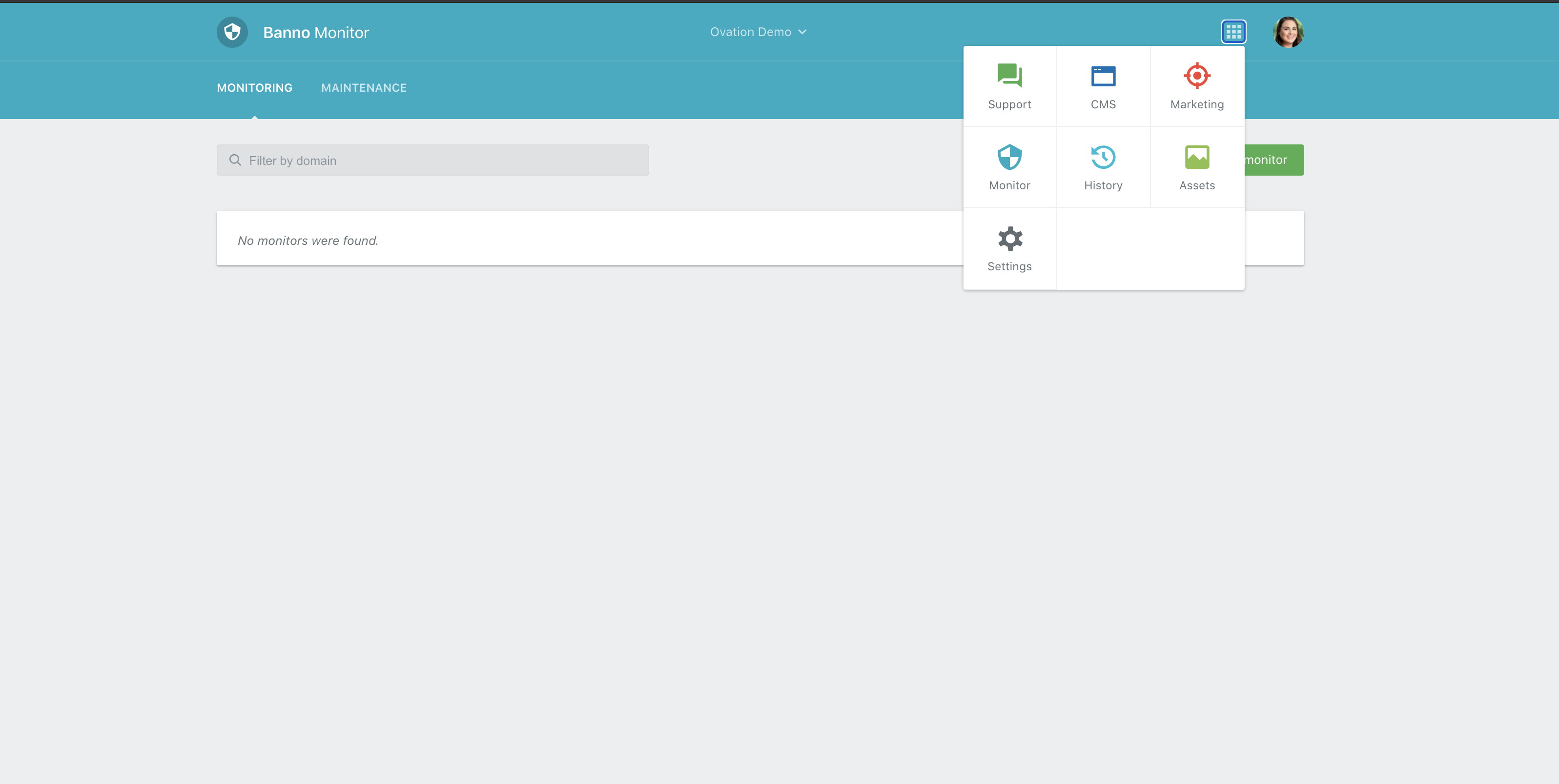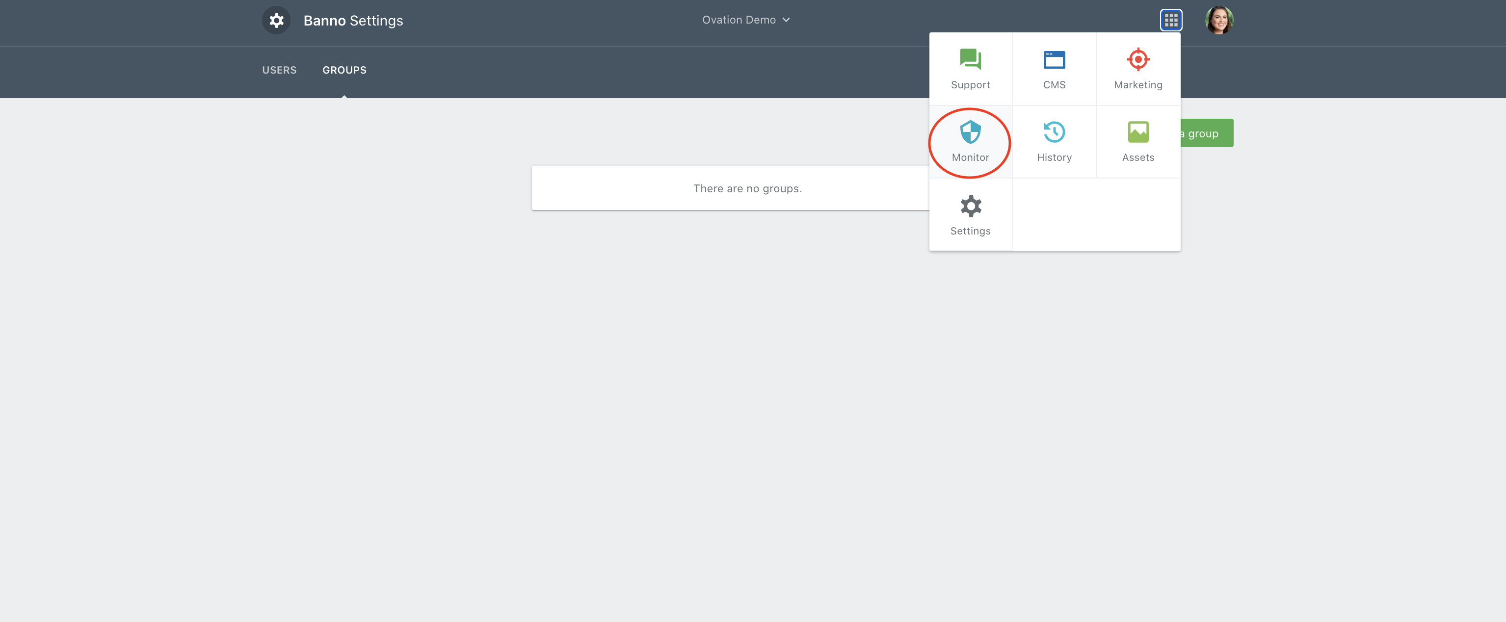 Monitor can be accessed through the Banno Portal, like the CMS and Marketing. As a product, it can be accessed in the grid icon in the top right corner of the Banno site, upon login. Its icon is a shield.