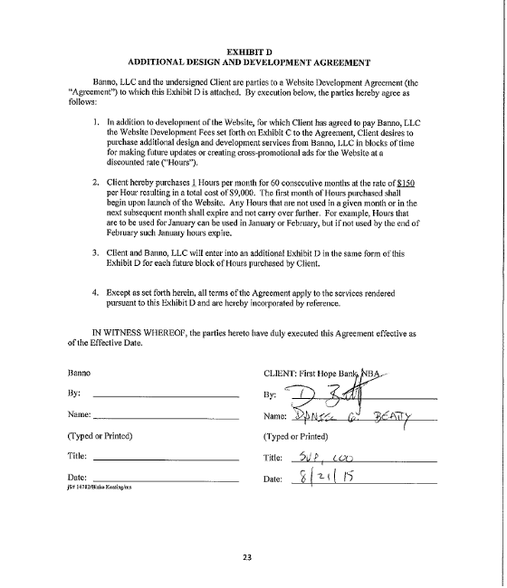 • Older Banno contracts have an "Additional Design and Development Agreement". Typically, the last page of the contract.