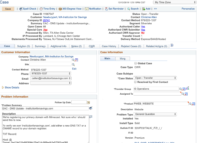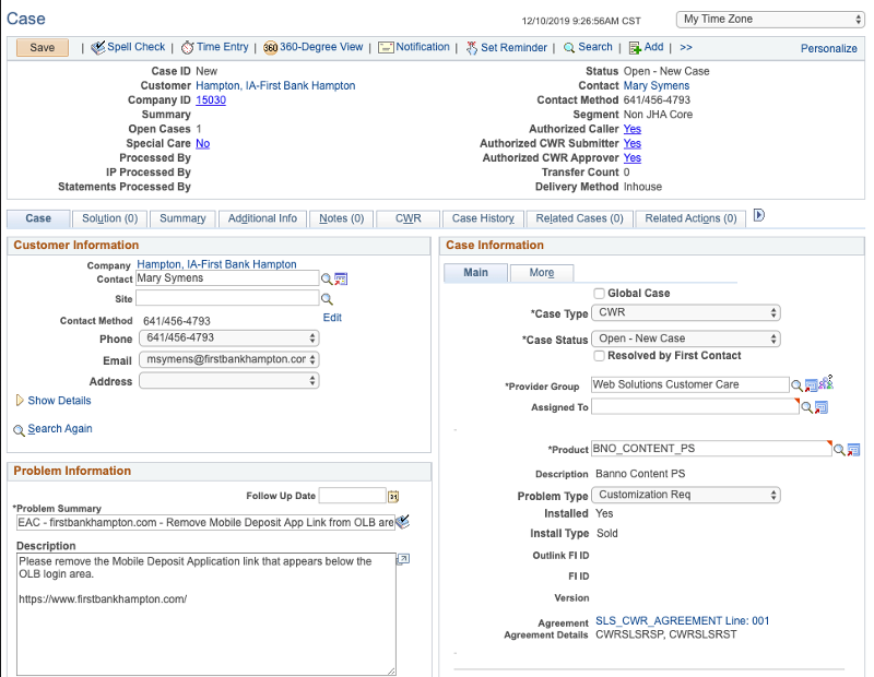 - iv. Add WORK after your initials in the Problem Summary on the Case tab.