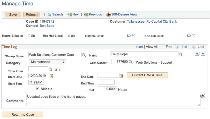 - A. For most cases, time billing for PWEB begins in the Time Entry Tab. All billing is in 15 minute increments. 15 minutes = 0.25 in time. Make sure that the case is saved in the correct provider group before you add the Time Entry. You can add multiple time entries on a case, but I recommend waiting until the work is complete before you move the Time Entries to the CWR tab. You can have a flat fee line (see below) on the CWR tab along with the regular Time Entry billing.