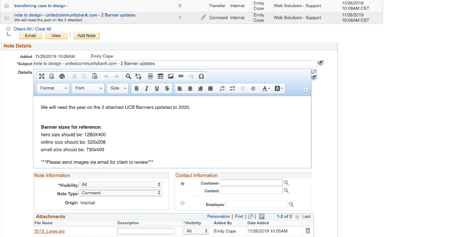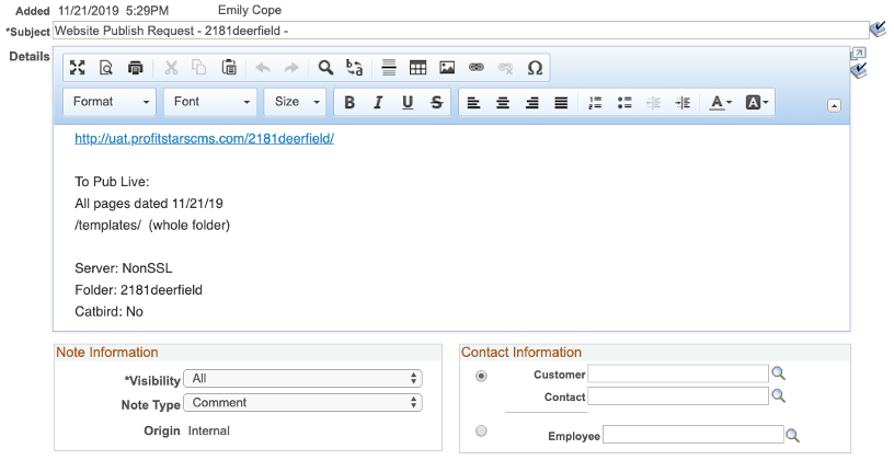 - b. Always leave the notes ‘Visibility’ as All unless it is private information for internal eyes only.
