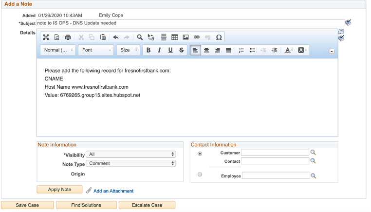 - C. Add note to OPS with DNS Request