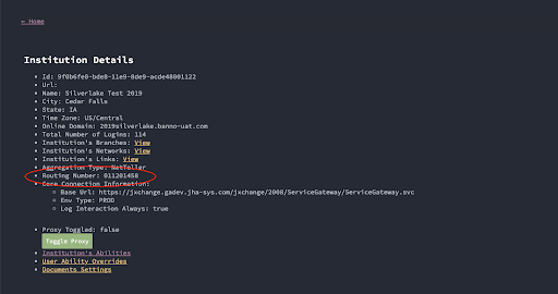 - Institution_id (Banno’s UUID for the FI)