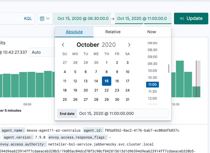 Banno has a large number of services, so if you can narrow down your search filters, you’ll have the best results when searching Kibana. We suggest narrowing your search by: