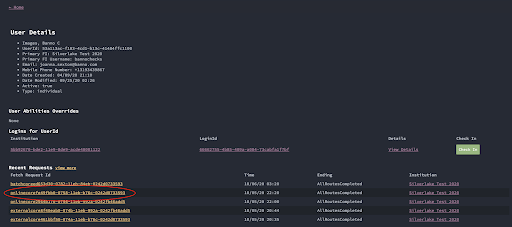 jXchange requests that are associated with the /fetch should include the fetch request ID in the message body. You can find the fetch request ID in DS reporting by looking up the user and then copying the request ID from here: