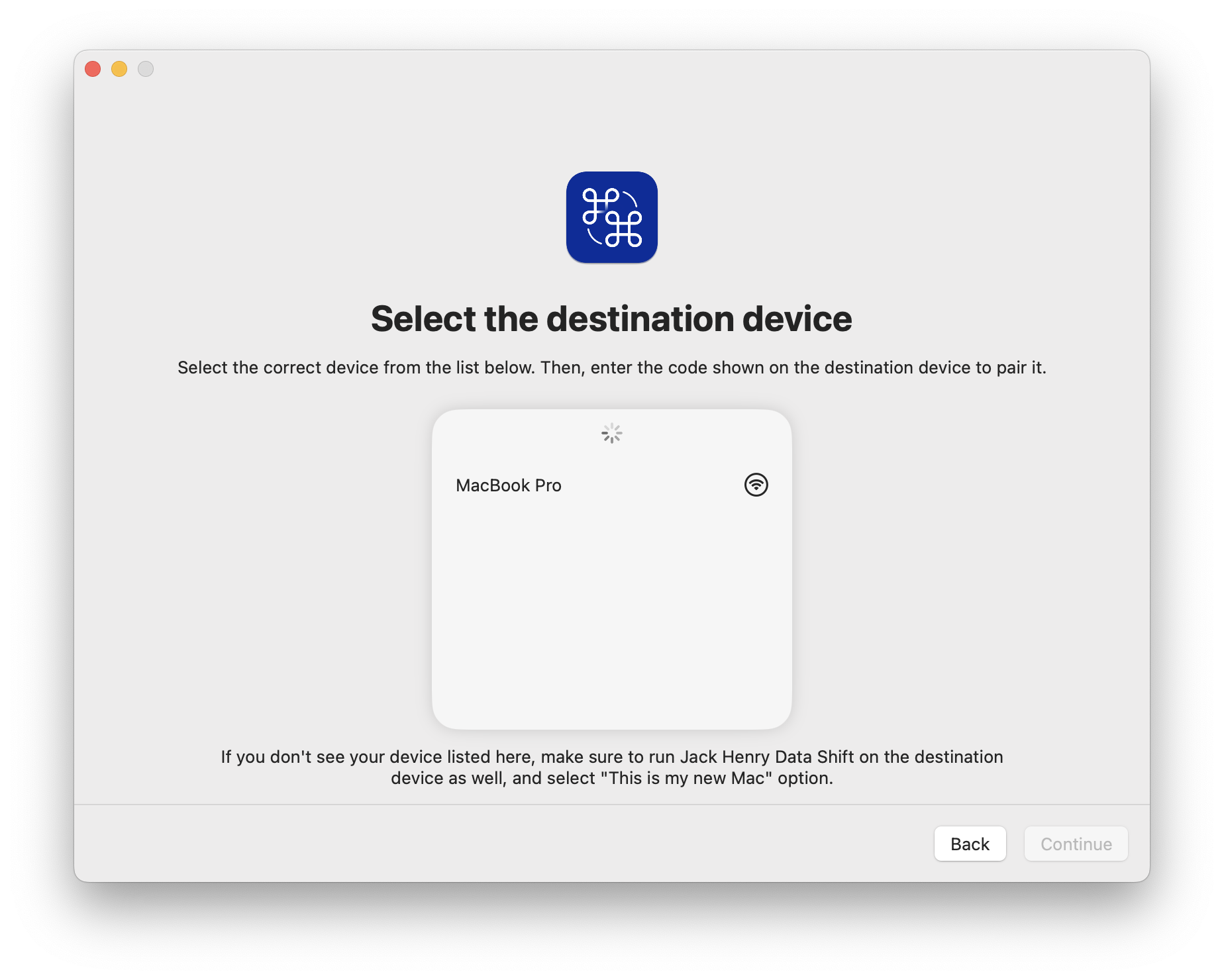 - On your old Mac, select the destination device (your new Mac).