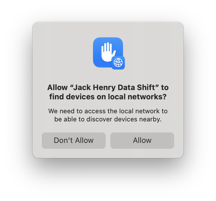 - If you are asked to grant local network access, select Allow. (This is required so that your Macs can find each other.)