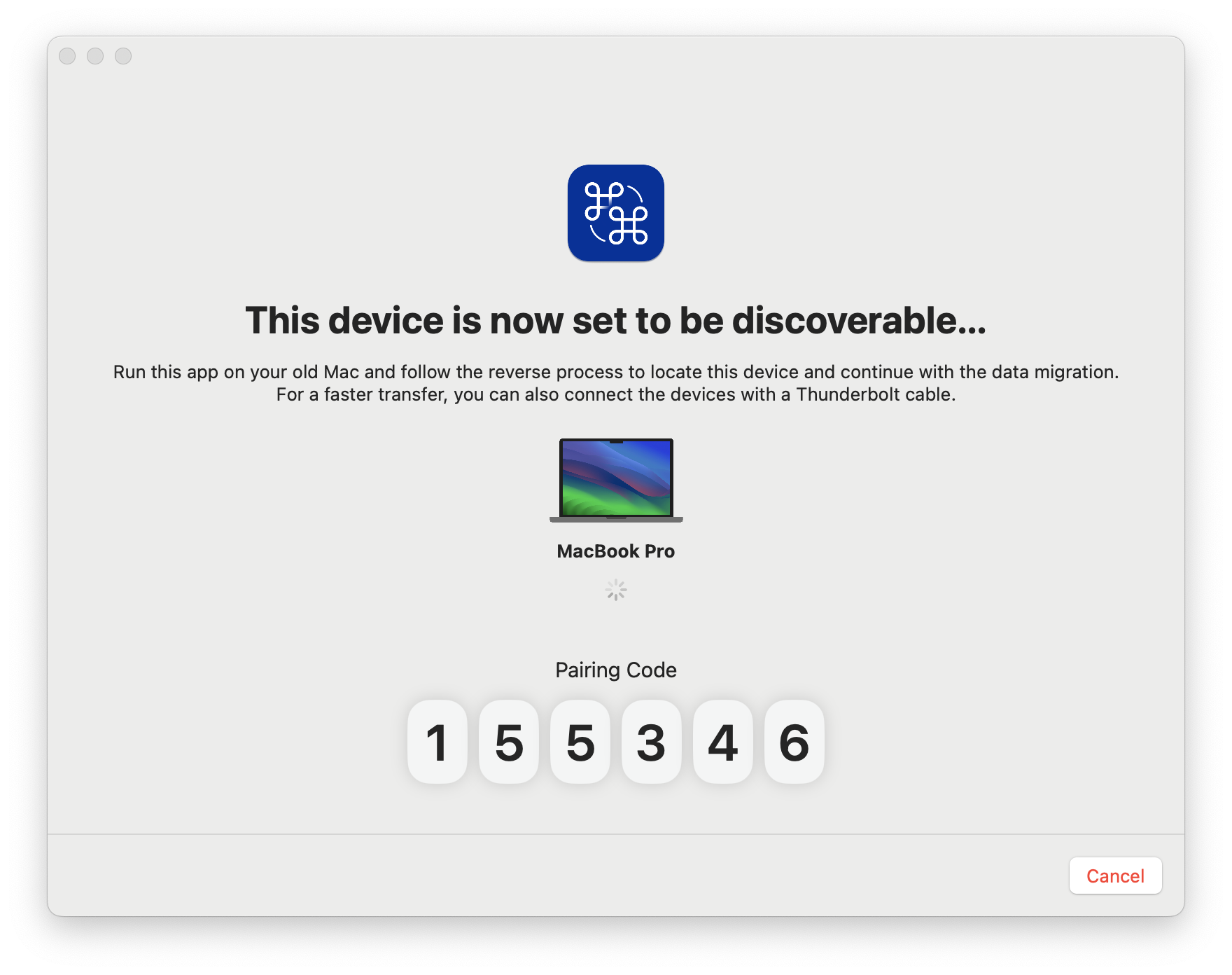- Your new Mac should be displaying a Pairing code. Type that code in on your old Mac.